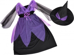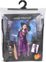 Očaravajući dječji kostim vještice za Noć vještica, karneval i rođendanske proslave. Sastoji se od ljubičasto-crne haljine i šiljatog šešira. Zahvaljujući elastičnom materijalu kostim je udoban, ističe se efektom tila i vezicama. Idealan za maskiranja, školske nastupe i kreativnu igru. Udobno nošenje, čaroban izgled i lako oblačenje razveselit će svaku malu vješticu.