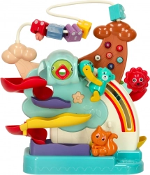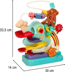 Jasne boje i tečno kretanje kuglica jačaju vizualnu percepciju, dok rukovanje elementima njeguje finu motoriku. Dijete se istodobno nenametljivo upoznaje s brojevima i uči uzročno-posljedične odnose.