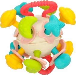 Šarena senzorička kuglica s grizalicama za najmlađe potiče razvoj fine motorike, donosi olakšanje pri nicanju zubića i stimulira osjetila zahvaljujući raznolikim teksturama, živim bojama i nježnom zveckanju.