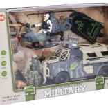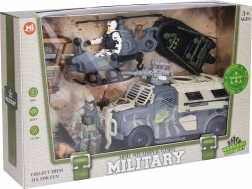 Akcijski vojni set za male stratege nudi sate zabave na kopnu, u zraku i na vodi. U kompletu je vozilo duljine 25 cm, figurice vojnika i bogata oprema. Za još veći doživljaj brinu svjetlosni i zvučni efekti aktivirani gumbom na oružju vozila. Zahvaljujući slobodnim kotačima vožnja je glatka i spremna za svaku misiju.