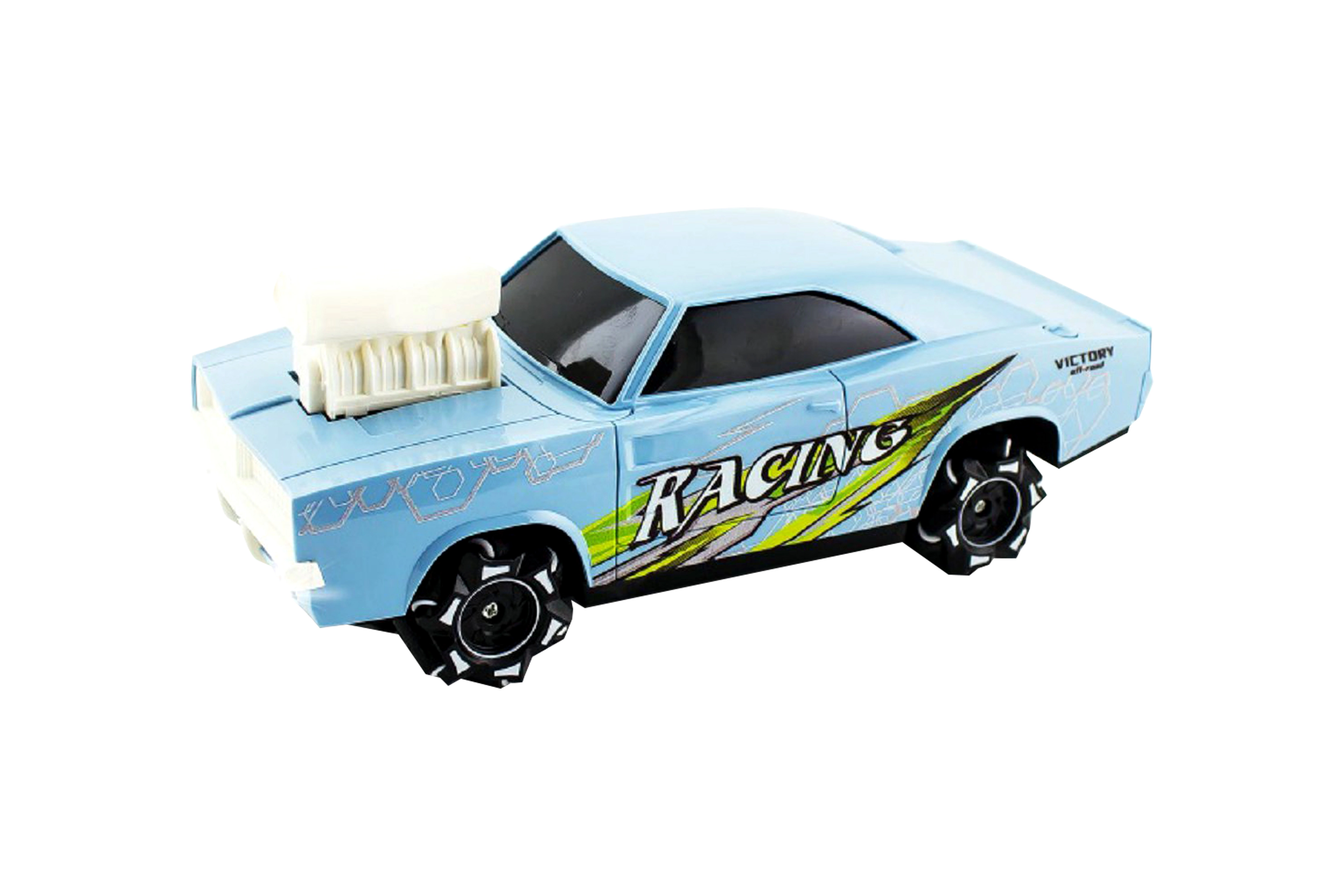 Integrirani svjetlosni i zvučni efekti pojačavaju doživljaj vožnje. Punjenje je jednostavno putem priloženog USB kabela, pri čemu je akumulator 3,7 V 500 mAh uključen u pakiranje. Prekidač ON/OFF na donjoj strani vozila olakšava upravljanje i štedi bateriju.