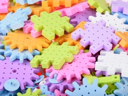 Kocke su dostupne u mnogim bojama poput plave, zelene, ružičaste, narančaste i bijele, što potiče kreativnost i prostorne vještine djece.