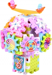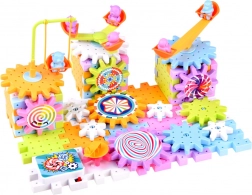 Set za sastavljanje sadrži zupčanike i male lopatice sa životinjicama koje se mogu okretati, što razvija koordinaciju i sposobnost rješavanja problema.