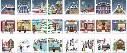 Adventski kalendar Eurographics sjajan je pratitelj za ljubitelje slagalica. Svako prozorčić skriva jedinstvenu božićnu sliku sastavljenu od 50 dijelova, u praktičnom kvadratnom formatu dimenzija 12,5 x 12,5 cm.
