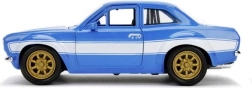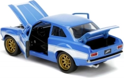Uživajte u svom omiljenom filmskom automobilu iz udobnosti doma s modelom 1974 Ford Escort. Ovaj model je savršena replika automobila iz legendarnog filma Brzi i žestoki, uključujući autentične detalje kao što su bijelo-plave pruge i zlatni kotači. Zahvaljujući otvaranju vrata, poklopca motora i prtljažnika, pruža ne samo estetski užitak već i dodatnu vrijednost za entuzijaste i kolekcionare.