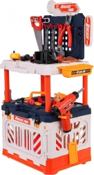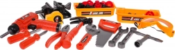 Set uključuje realistične plastične alate, kao što su bušilica, čekić, pila i drugi, koji potiču dječju maštu.