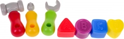 Ispod ploče nalazi se otvorena ladica, gdje djeca mogu spremati alatke i blokove u obliku raznih slova i oblika. Radionica se napaja s tri baterije tipa AG13, koje su uključene u paket.