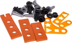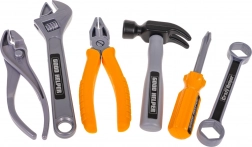 Odvijač, čekić, ključevi, kliješta, zaštitne naočale i maska, drvene letvice i spojni materijal. Sve za kreativno slaganje i vježbu fine motorike.