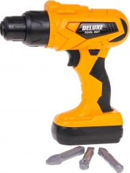 Realistična bušilica zavija i odvija, proizvodi zvukove, ima izmjenjive bitove (ravni, križni, svrdlo) i odvojivi „akumulator“. Napajanje: 2× AA 1,5 V (nisu uključene).