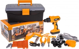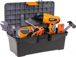 Ovaj dječji set alata nudi sve što malom majstoru treba: veliku kutiju za alat, zaštitne naočale i masku, čekić, odvijač, kliješta, ključeve te građevne dijelove s vijcima i tiplama. Zahvaljujući kvalitetnoj plastici set je lagan, izdržljiv i idealan za igru kao pravi profesionalci.