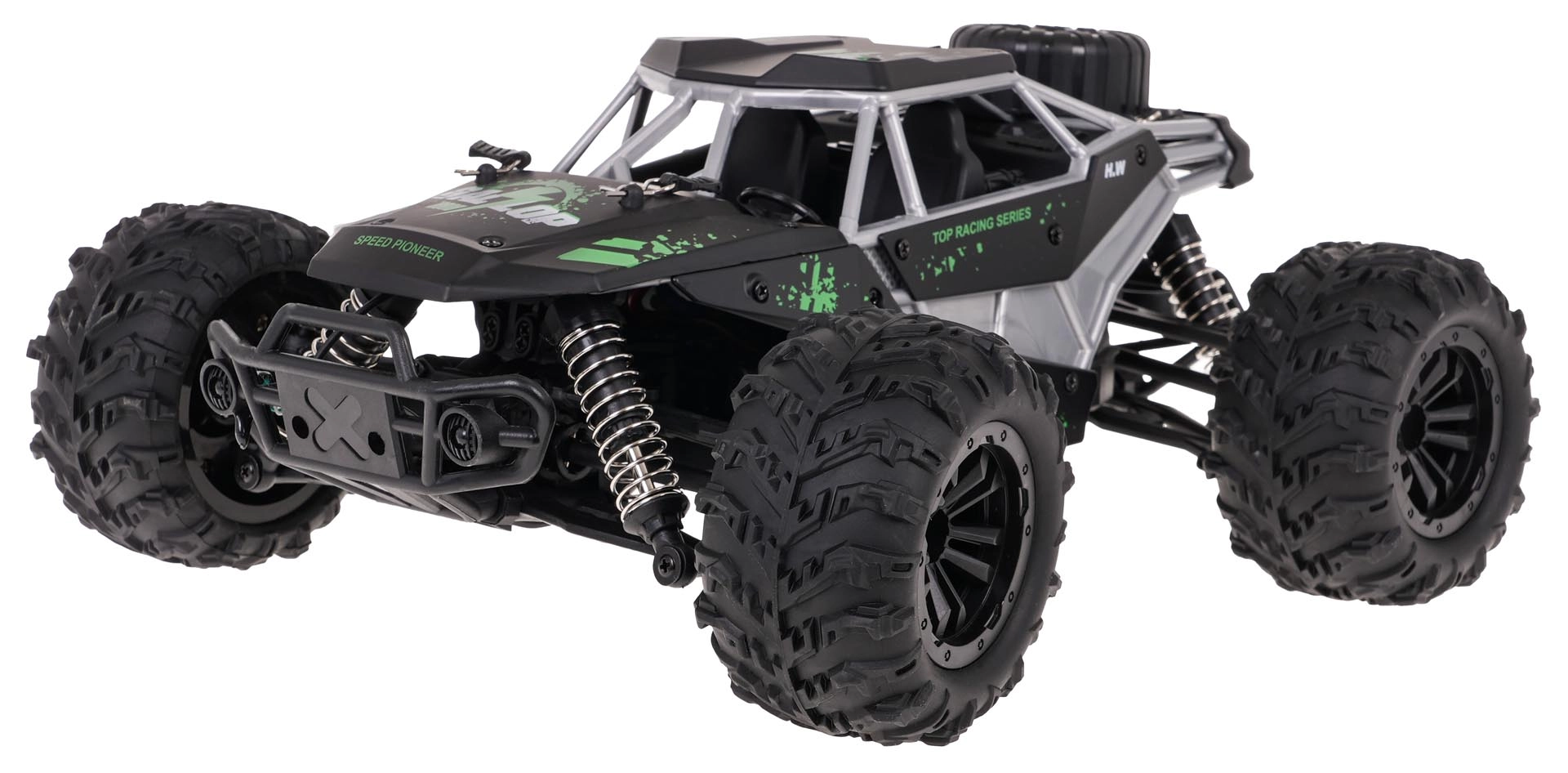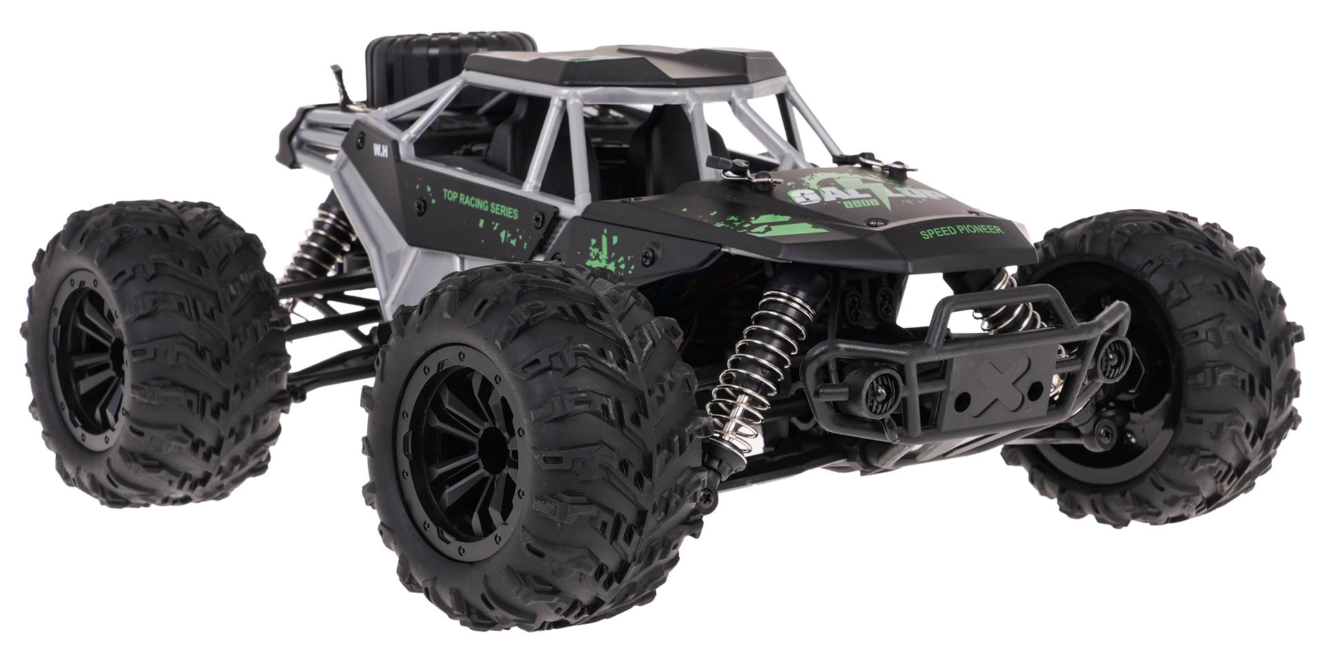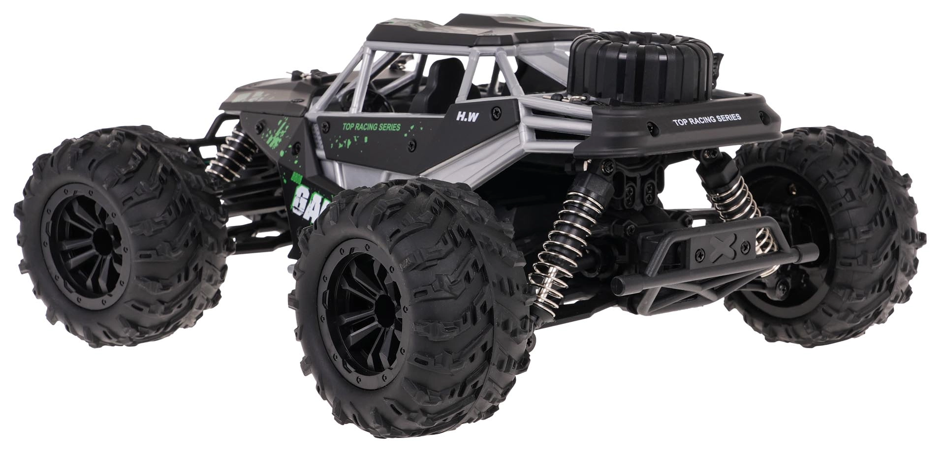 GALLOP 1:16 je izdržljiv terenski RC automobil osmišljen za zabavno savladavanje prepreka. Metalna karoserija i anti-kolizijska konstrukcija osiguravaju dug vijek trajanja, dok pogon na svim kotačima 4x4, učinkovito ogibljenje i velike gumene gume pružaju izvrsnu trakciju na neravninama, šljunku i travi.