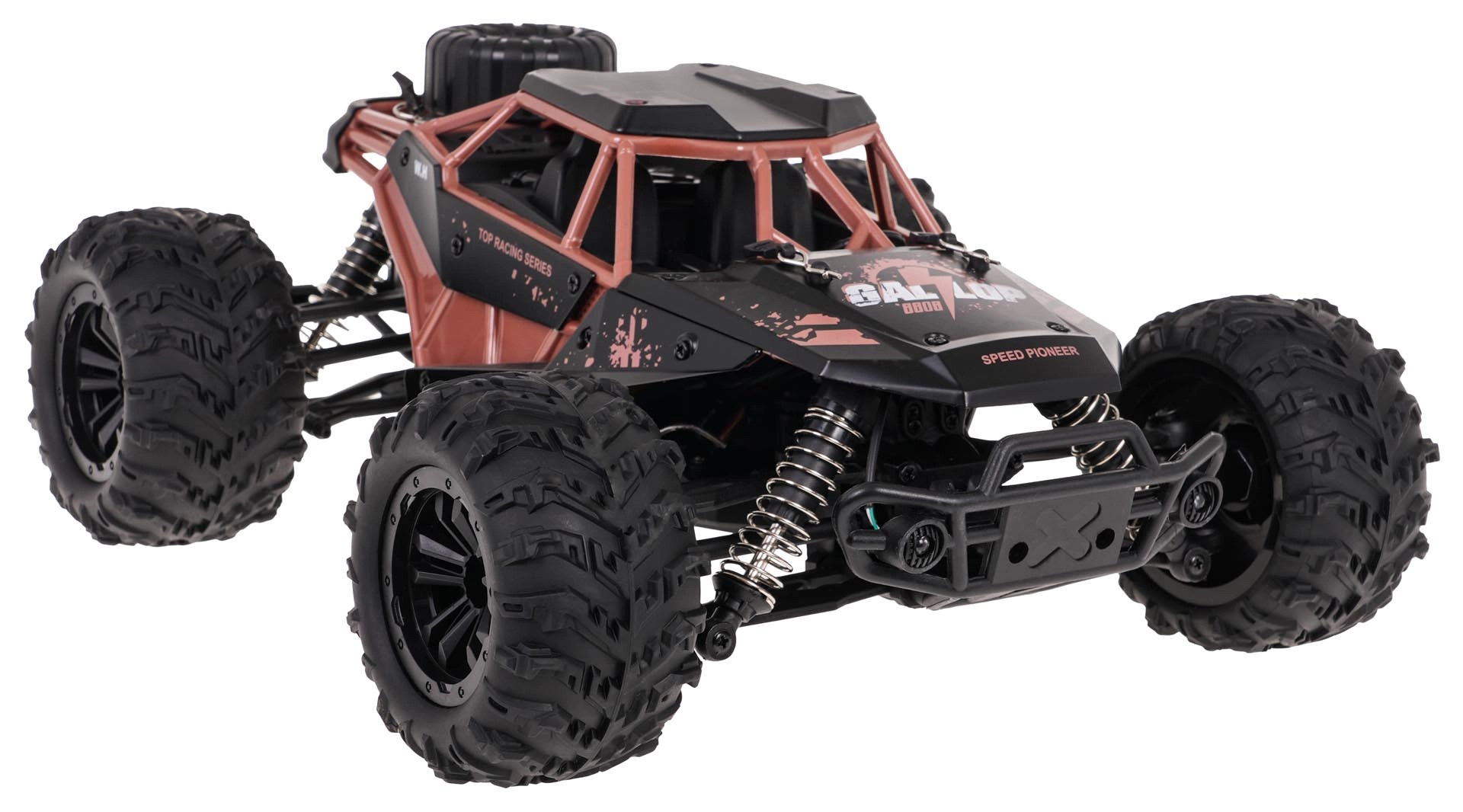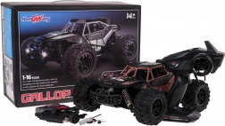 GALLOP je robustan terenski RC automobil namijenjen zabavi u interijeru i eksterijeru. Metalna karoserija i konstrukcija otporna na sudare povećavaju dugotrajnost modela, dok će neovisno opružno ogibljenje i veliki kotači lako savladati neravnine, kamenje i prepreke. Zahvaljujući LED svjetlima možete nastaviti s vožnjom i nakon što se smrači.