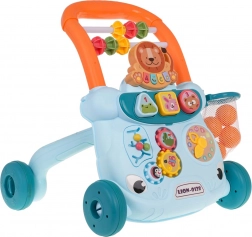 Multifunkcionalna hodalica i guralica u plavoj izvedbi prati djecu kroz njihove prve korake sigurno i razigrano. Robusno tijelo radi veće stabilnosti može se opteretiti vodom ili pijeskom, kotači imaju gumeni gazni sloj i široki razmak za sigurnije vođenje. Interaktivni panel razvija finu motoriku, logiku i osjećaj za vrijeme zahvaljujući satu s pomičnim kazaljkama, zupčanicima i labirintu s kuglicama.