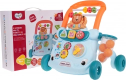Šarena dječja hodalica i guralica podržava prve korake i osjetilni razvoj. Nudi stabilnu konstrukciju s mogućnošću opterećenja, široki razmak kotača s gumenim gaznim slojem, interaktivni panel s mnoštvom aktivnosti, odvojivi klavirčić i košaricu za loptice. Idealno od 18 mjeseci.