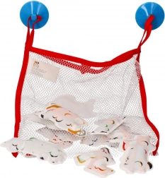 Naljepnice su mekane, ugodne za držanje i prianjaju na glatke mokre površine (kada, pločice). Nakon kupanja jednostavno ih spremite u prozračnu mrežicu dimenzija 23 × 27 cm, koja omogućuje otjecanje vode i higijensko sušenje.