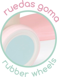 Gumirani kotači osiguravaju tihi rad i dobar kontakt s podlogom. Stabilna četverokotačna konstrukcija podržava ravnotežu početnika.