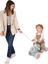 Promišljeni detalji povećavaju udobnost i sigurnost: okretna upravljača sa zaštitom od priklještenja prstića, meke gumirane ručke i tihi kotači za glatku vožnju. Podnožica olakšava odmor umornim nožicama, a vučna traka (100 cm) omogućuje roditeljima da dijete udobno vode. Mala masa olakšava prenošenje i pohranu.