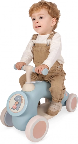 Veselo guralo COCO 2024 idealno je za prve vožnje djece koja već savladavaju prve korake. Zahvaljujući niskom sjedalu i stabilnoj konstrukciji djeca sigurno isprobavaju sjedanje, odgurivanje i upravljanje, čime prirodno razvijaju motoriku i sigurnost kretanja. Dizajn s malim dinosaurom u nježnim pastelnim bojama daje guralu jedinstven izgled.