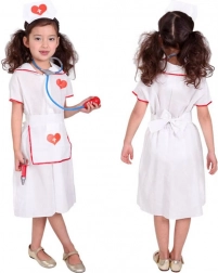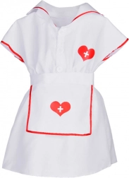 Bijela haljina s crvenim rubovima, srce s križem i pregačica stvaraju klasičan izgled medicinske sestre koji djeca vole.