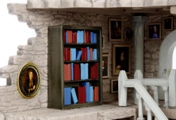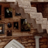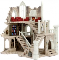 Gryffindorski toranj ima detaljnu izradu s nekoliko razina, crvenim sofama, kaminom i dekorativnim elementima poput slika, idealan za igru s figuricama.