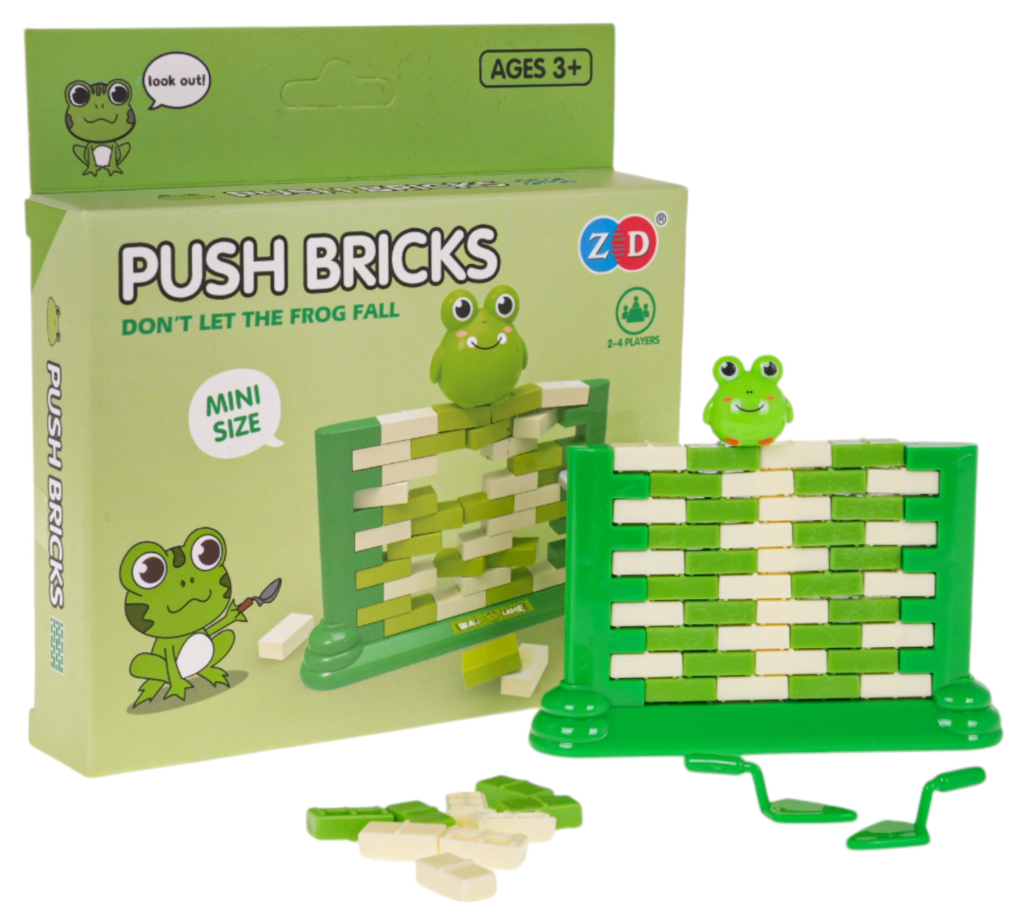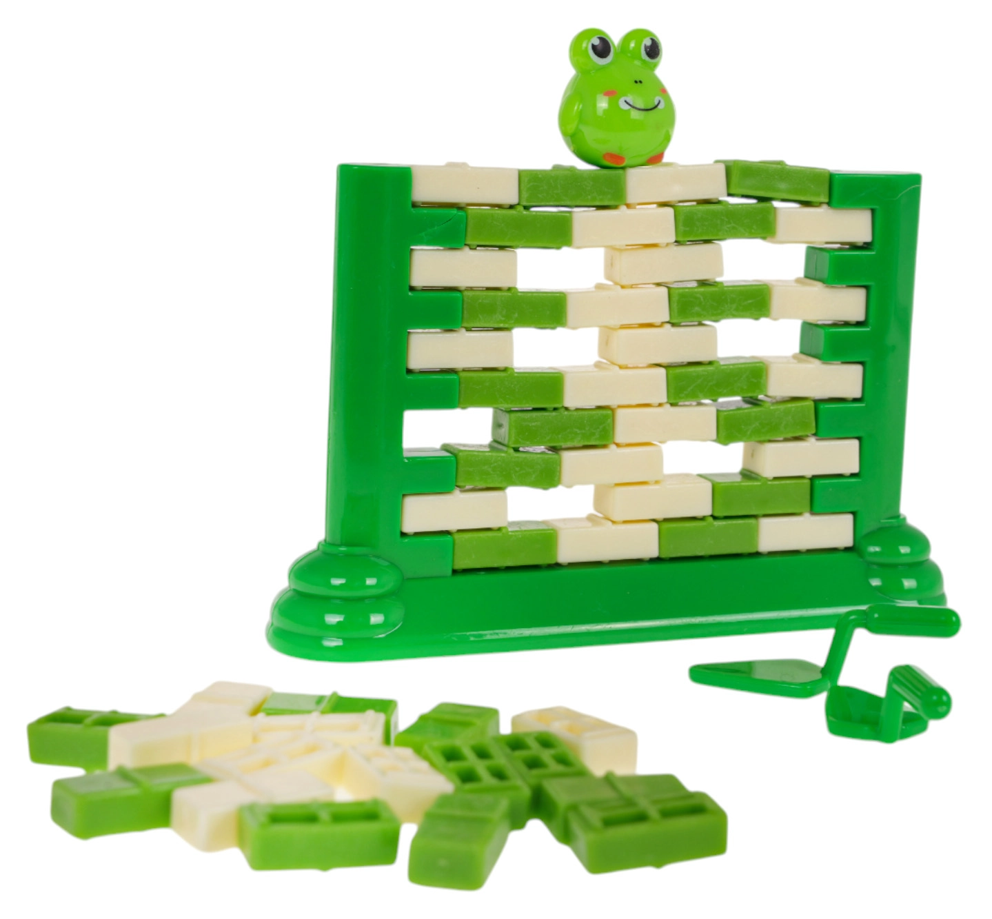 Zabavna vještinska igra za djecu od 3 godine, u kojoj od “ciglica” gradite zid i pomoću male žlice pažljivo izguravate pojedine dijelove. Na vrhu sjedi figurica žabe – cilj je da ne padne. Igra razvija koncentraciju, logičko razmišljanje i koordinaciju ruka–oko, a ujedno nudi sjajnu zabavu za cijelu obitelj.