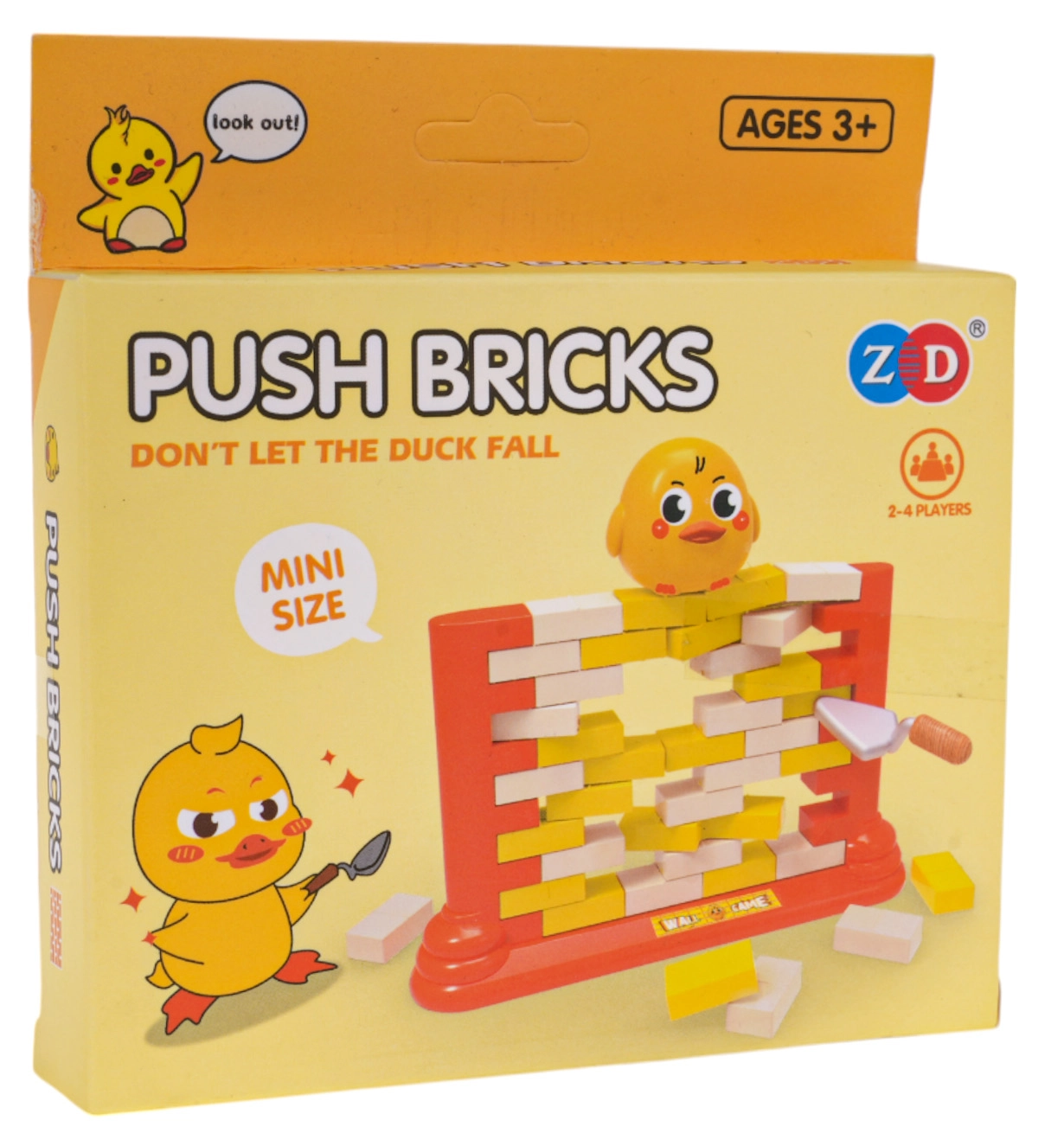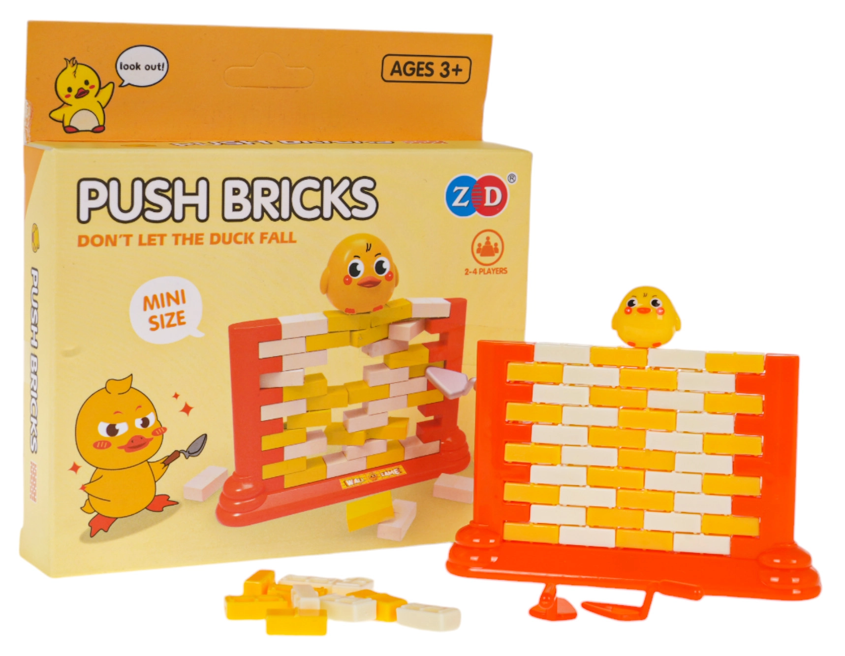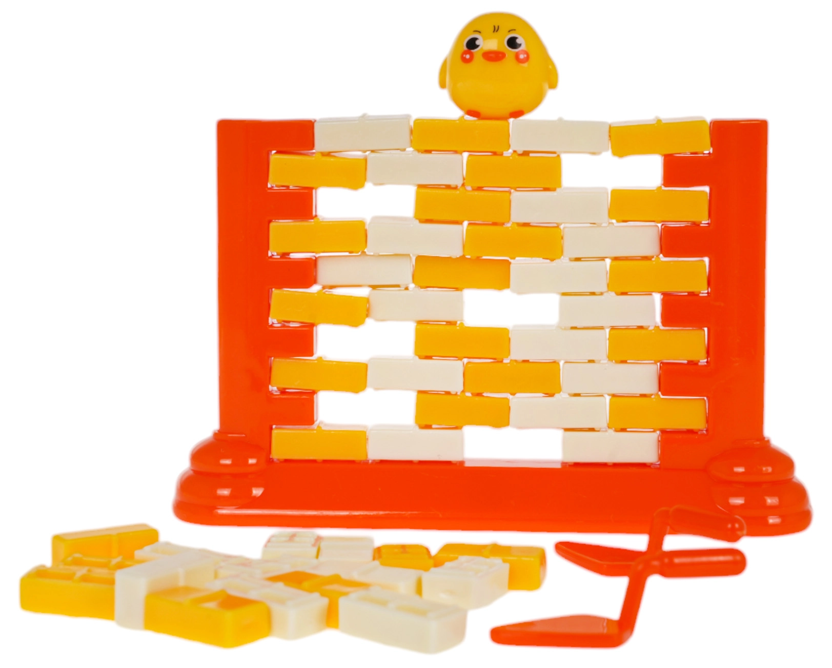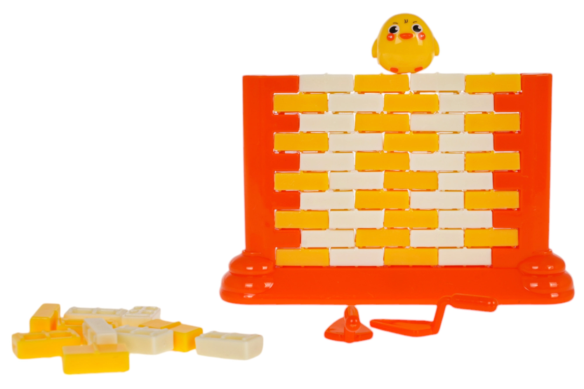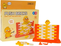 Zabavna vještinska igra za djecu od 3 godine u kojoj slažete zid od kockica i pažljivo ih gurate posebnom lopaticom tako da figurica patkice ne padne. Potiče koncentraciju, logičko razmišljanje i koordinacijske sposobnosti, a ujedno je sjajna obiteljska zabava i opuštanje.