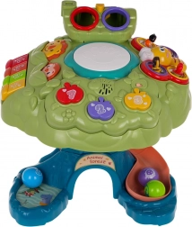 Ovo interaktivno stablo idealno je za djecu od 18 mjeseci. Nudi brojne različite aktivnosti uključujući svjetlucajući bubanj, klavir, voćnjak s jabukama i zabavne životinje. Igračka potiče djecu na učenje boja, melodija i osnovnih engleskih brojeva, sve kroz interaktivnu zabavu.