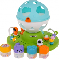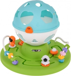 Ova interaktivna igračka spaja razvrstavanje oblika, svjetlosne i zvučne efekte te motoričke aktivnosti u jednu zabavnu cjelinu. Dijete umeće oblike u odgovarajuće otvore, okreće zupčanicima i istražuje labirinte, čime prirodno vježba koordinaciju ruku i očiju te sposobnost rješavanja problema.