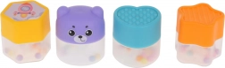 Četiri kocke s kuglicama iznutra ugodno zveckaju, motiviraju na ponavljano umetanje i uče prepoznavati oblike i boje.