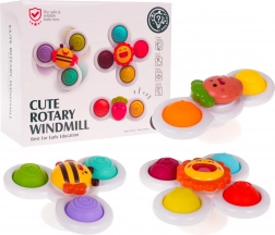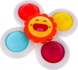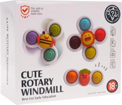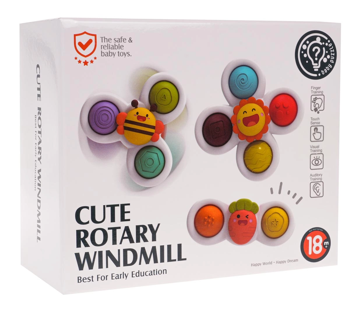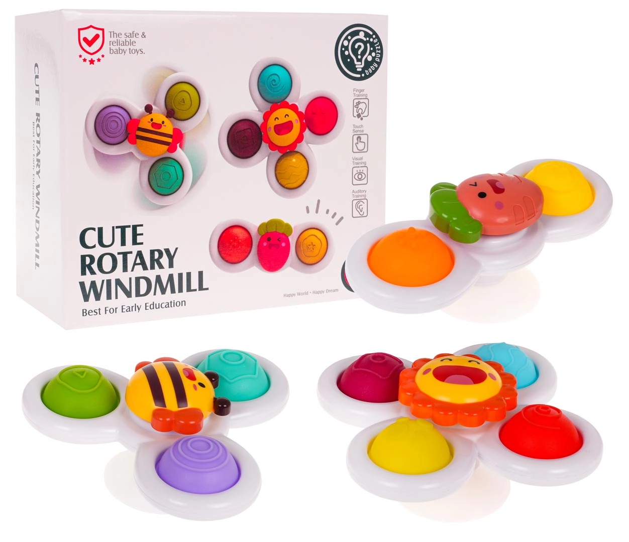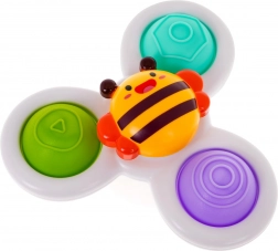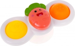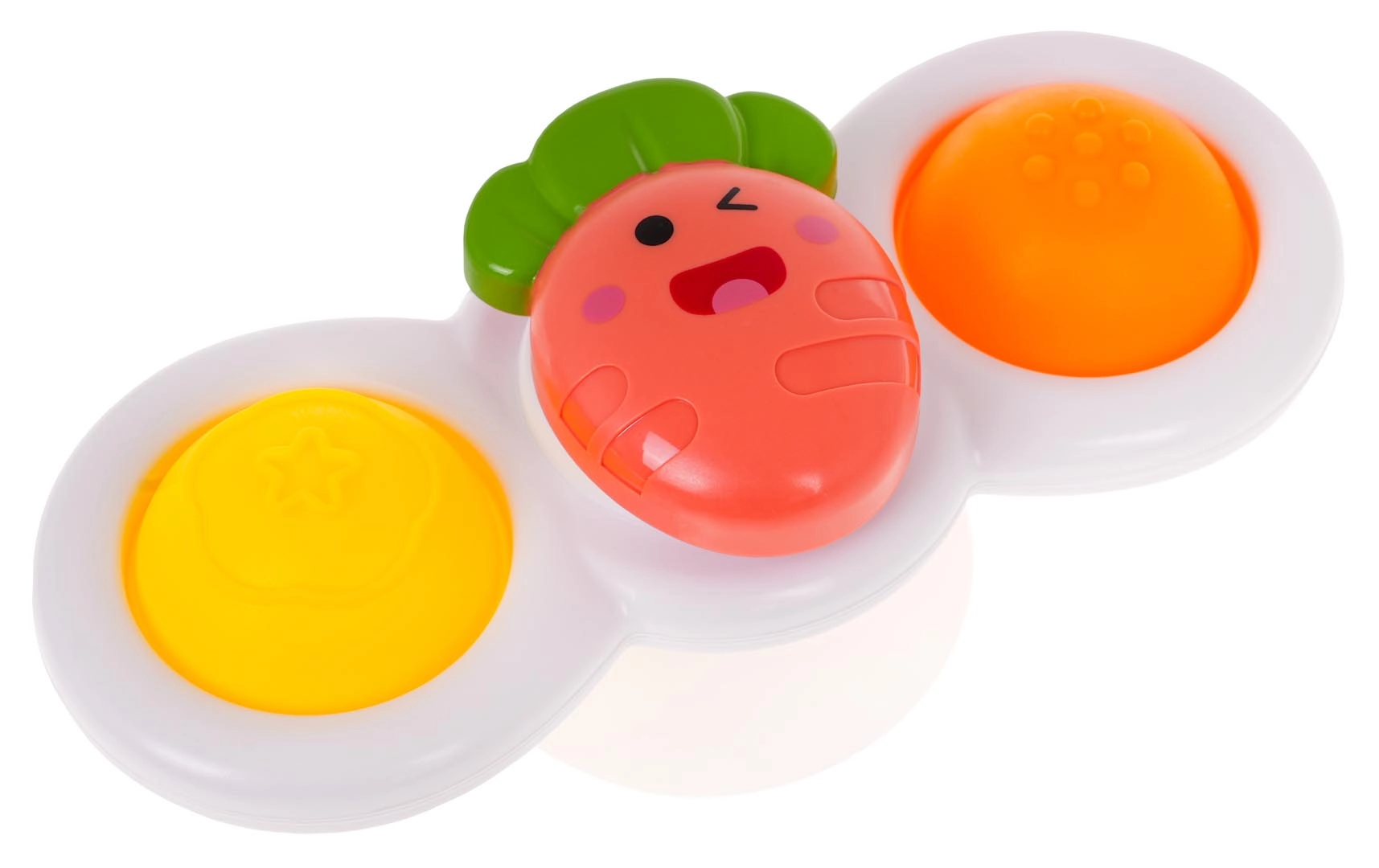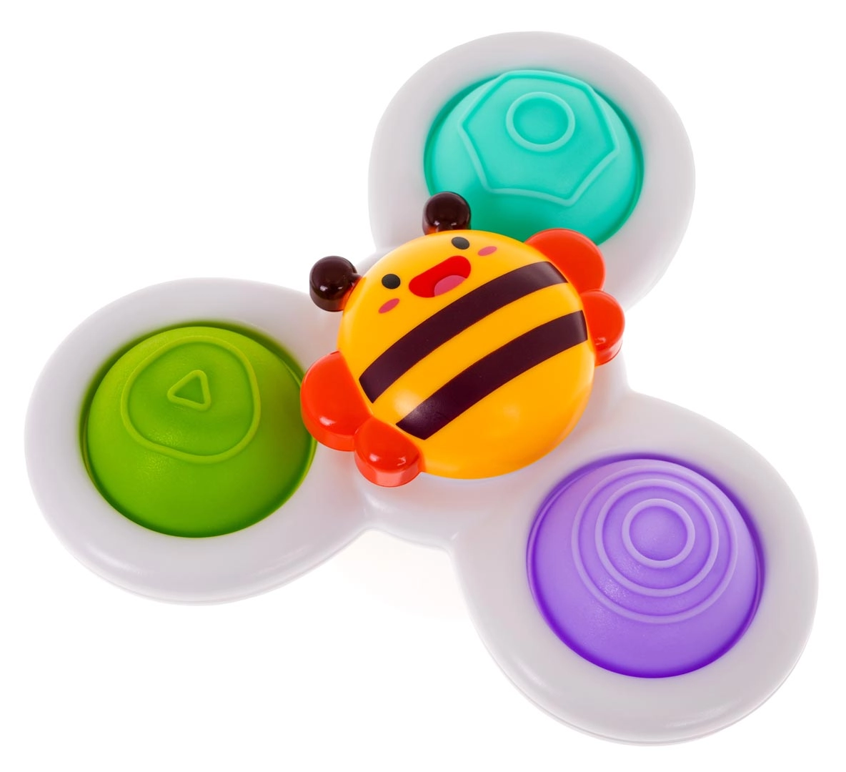 Tri simpatična motiva – sunce, pčelica i mrkva – spajaju razigrani dizajn s praktičnim funkcijama za razvoj djeteta. Jaka vakuumska čašica na stražnjoj strani omogućuje pričvršćivanje igračke na razne glatke površine, dok izdržljivi ležajevi osiguravaju dugotrajno i glatko okretanje. Zahvaljujući vodootpornom dizajnu, spinneri su savršeni i za kupanac.