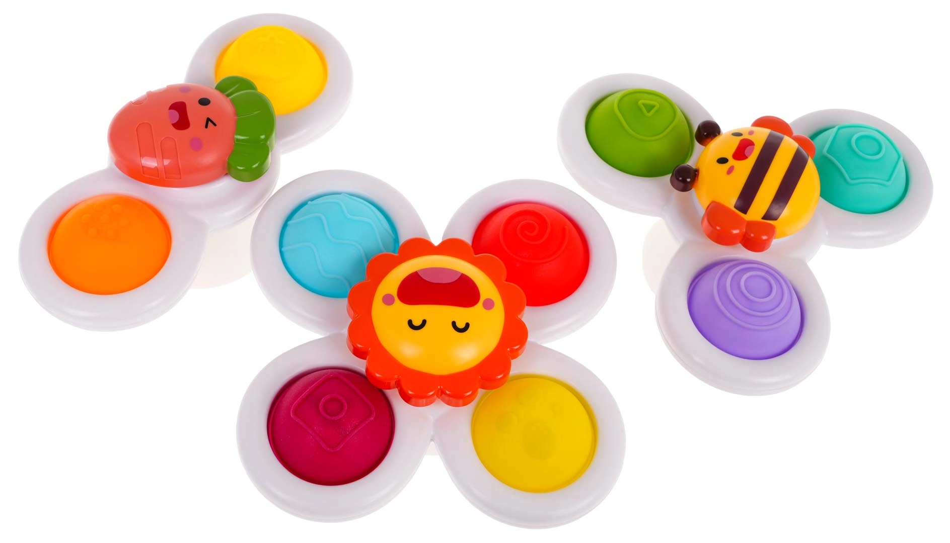 Otkrijte zabavu i razvoj fine motorike uz šareni set od tri senzorička spinnera s jakom vakuumskom čašicom. Igračke se glatko okreću, vodootporne su, prikladne od 18 mjeseci i imaju gumene tipke za pritiskanje koje stimuliraju osjetila i umiruju. Pričvrstite ih na staklo, kadu ili stol i pružite djeci puno poticajne zabave kod kuće i na putu.