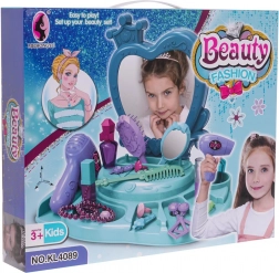Set uključuje toaletku s predivnim ogledalom, fen, češalj, četku za kosu i ostale kozmetičke dodatke, donoseći sate zabave.