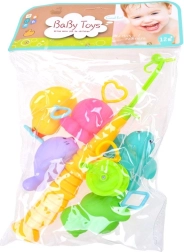 Otkrijte očaravajući svijet vodenih igara s ovim setom gumenih životinjica i ribarskog štapa, koji donosi mnogo zabave u svakodnevno kupanje. Svaka od pet životinjica dizajnirana je za jednostavno hvatanje štapom zahvaljujući plastičnoj udici, što omogućuje djeci vježbanje koordinacije pokreta i fine motorike.