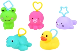 Set sadrži pet šarenih životinjica koje donose radost i zabavu tijekom kupanja.