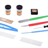 - Pripremljeno stakalce, 2× stakalce za preparat, 2× čašica s čepom, kutijica za uzorke, pinceta, špatula, skalpel, igla, odvijač, upute