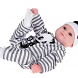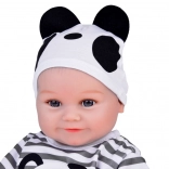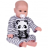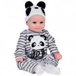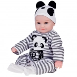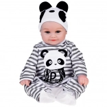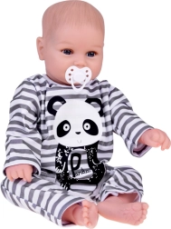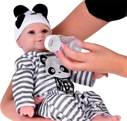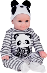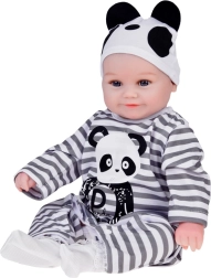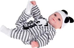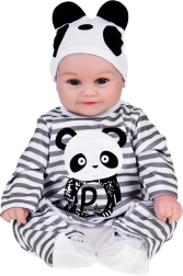 Slatka mekana lutka dječak odjevena je u prugasti kombinezon s motivom pande i idealna je za svaku malu njegovateljicu ili njegovatelja. Ova realistična lutka, duga 45 cm, izvrstan je suputnik za igru zahvaljujući mekim materijalima i preciznoj izradi.