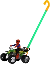 Upoznajte ATV igračku koja će oduševiti djecu svih dobnih skupina. Glavna značajka su njezini veliki terenski kotači, koji omogućuju laganu vožnju po bilo kojoj podlozi. Dizajnirana je da bude izdržljiva i podnese i divlju igru.