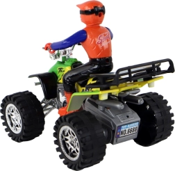 ATV će zavoljeti sva djeca jer dolazi s realističnim detaljima poput velikih kotača i upravljača, te s vozačem odjevenim u narančasto-plavu odjeću, što igri daje autentičnost i zabavu.