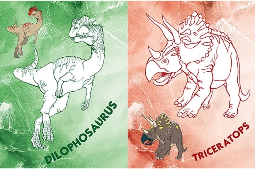 Ova će bojanka razveseliti sve male paleontologe. Djeca mogu bojiti omiljene dinosaure prema obojenim predlošcima i istodobno isprobati izradu s slikama za peglanje, koje lako prenesu na tekstil uz pomoć glačala.