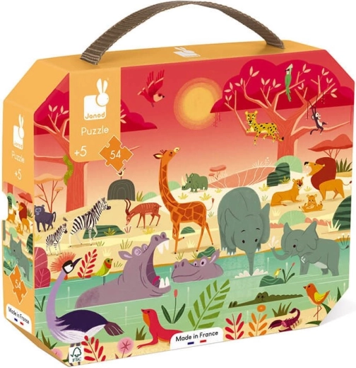Otkrijte zabavno slaganje s JANOD puzzleom s motivom savane u praktičnom koferu. Idealno za dom i putovanja, sadrži i plakat-predložak za lakše slaganje. 54 dijelova, kofer s ručkom i dimenzija nakon slaganja 50 × 40 cm razveselit će male ljubitelje životinja te razvijati strpljenje i finu motoriku.