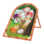Šareni stalak s numeriranim mrežastim otvorima motivira djecu na precizna bacanja i učenje kroz igru.
