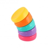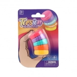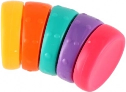 Predstavljamo dugin antistresni prsten – mali toranj s 5 zakrivljenih, šarenih prstenova koji savršeno pristaju jedan u drugi. Svaki prsten ima raznolike teksture i oblike, što dodatno razvija finu motoriku i potiče kreativnost.