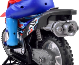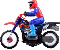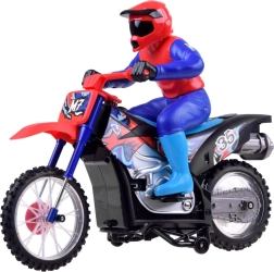 Doživite uzbuđenje ekstremnih sportova s ovom terenskom CROSS motorom na daljinsko upravljanje. Izrađena je od kvalitetnih plastičnih materijala, ima opružni ovjes na prednjim i stražnjim kotačima te gumene gume. Motocikl je uglavnom sklopljen i djeluje realistično zahvaljujući svojim funkcijama i detaljima.