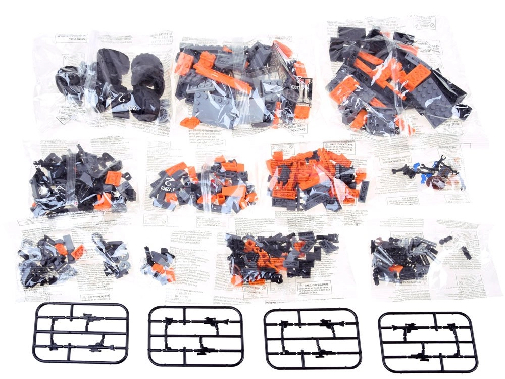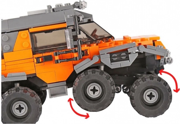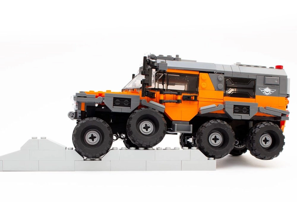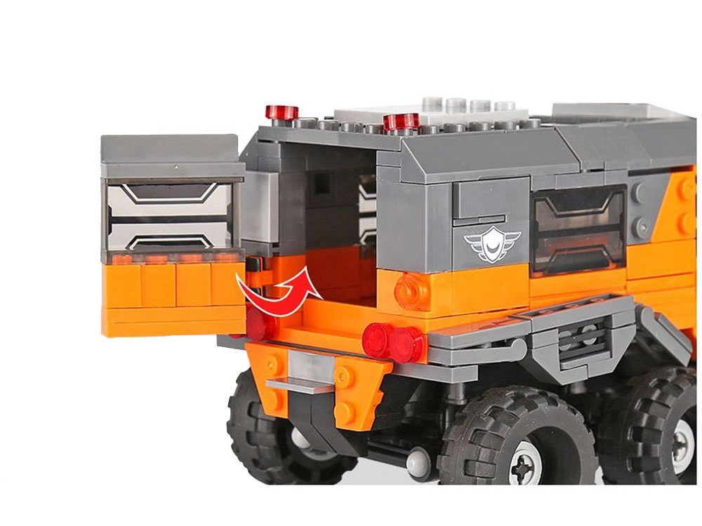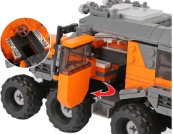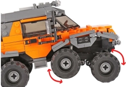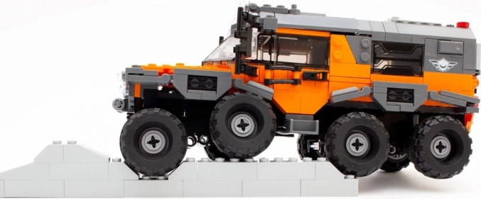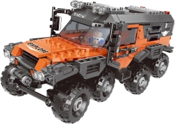 Ovaj sjajan set namijenjen je za sastavljanje terenskog vozila. Kockice vam omogućuju izgradnju 8-kotačnog vozila za posebne zadatke. Odlično je što nakon sastavljanja takvog vozila auto ima pokretne dijelove. Tehničke kocke u narančastoj i crnoj boji izrađene su vrlo atraktivno.