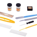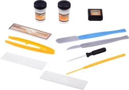 U pakiranju se nalaze pločice, posudice za uzorke, pinceta, kapaljka, skalpel, igla i drugi alati – sve spremno za kućne eksperimente.