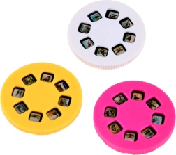 Sadrži tri šarena plastična diska s nekoliko slika, koja se lako mogu mijenjati za raznoliko projiciranje.
