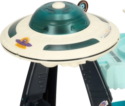 Futuristička kula UFO je središte staze, po uključenju svijetli i ispušta zvukove, što dodaje atmosferi svemirske scene. Ovaj set ne samo da zabavlja, već također razvija motoriku, koordinaciju i maštu djece i uvodi ih u fascinantan svijet pun avantura!