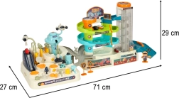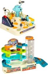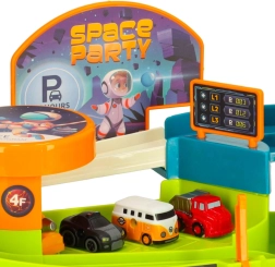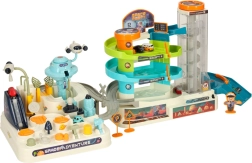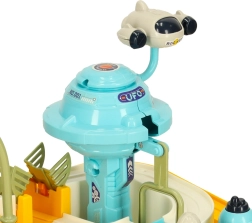 Multifunkcionalna svemirska autodrom nudi dvostruko uzbuđenje i mogućnosti igre. Zahvaljujući svojim dvjema trasama moguće je kreirati dva manja kruga ili ih spojiti u jedan veliki i pratiti kako mali autići jure kroz svemirski krajolik. Velika staza opremljena je električnim dizalom, koje automatski prevozi aute na vrh, osiguravajući neprekidnu zabavu. Manja staza sadrži interaktivne elemente, koje dijete mora samo upravljati, što angažira i razvija njegove manualne sposobnosti. U paketu se nalazi šest vozila, uključujući policijski i miješalicu, što omogućuje raznovrsnu zabavu.
