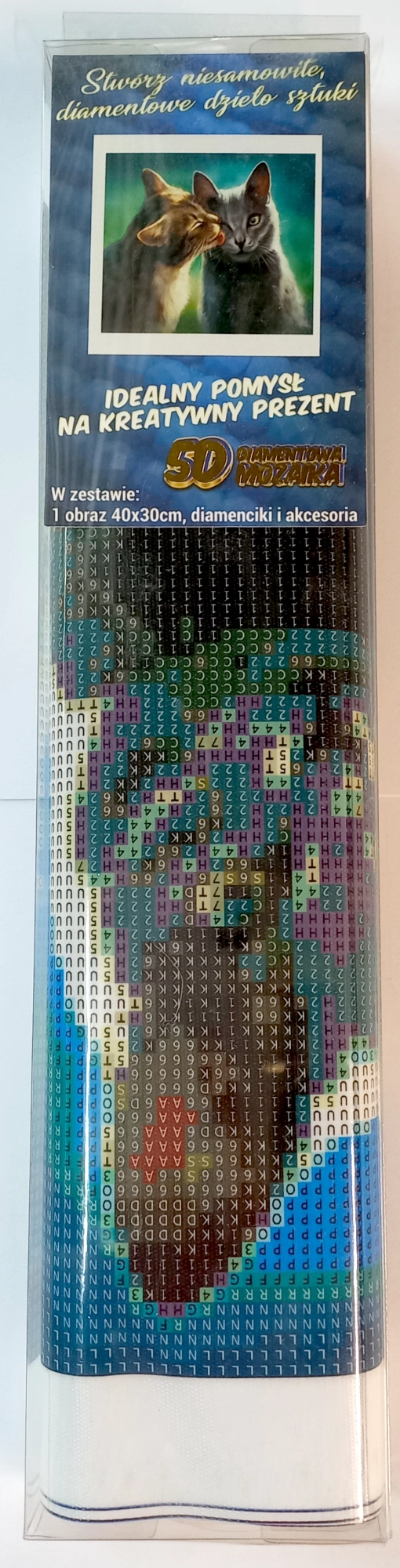 Pakiranje sadrži: platno s pretiskanom slikom, pero za aplikaciju kamenčića, posudicu za prosipanje kamenčića, vosak za lijepljenje, set šarenih kamenčića.