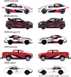 Ovaj poklon set razveselit će svakog ljubitelja motorsporta i brenda TOYOTA. U pakiranju se nalazi pet legendarnih modela – GR Supra, GRMN Yaris, Hilux Revo, Corolla Altis i 2000 GT – u ujednačenom trkaćem stilu. Metalne karoserije, detaljni otisci i funkcionalni otvarajući elementi daju autićima realističan izgled.